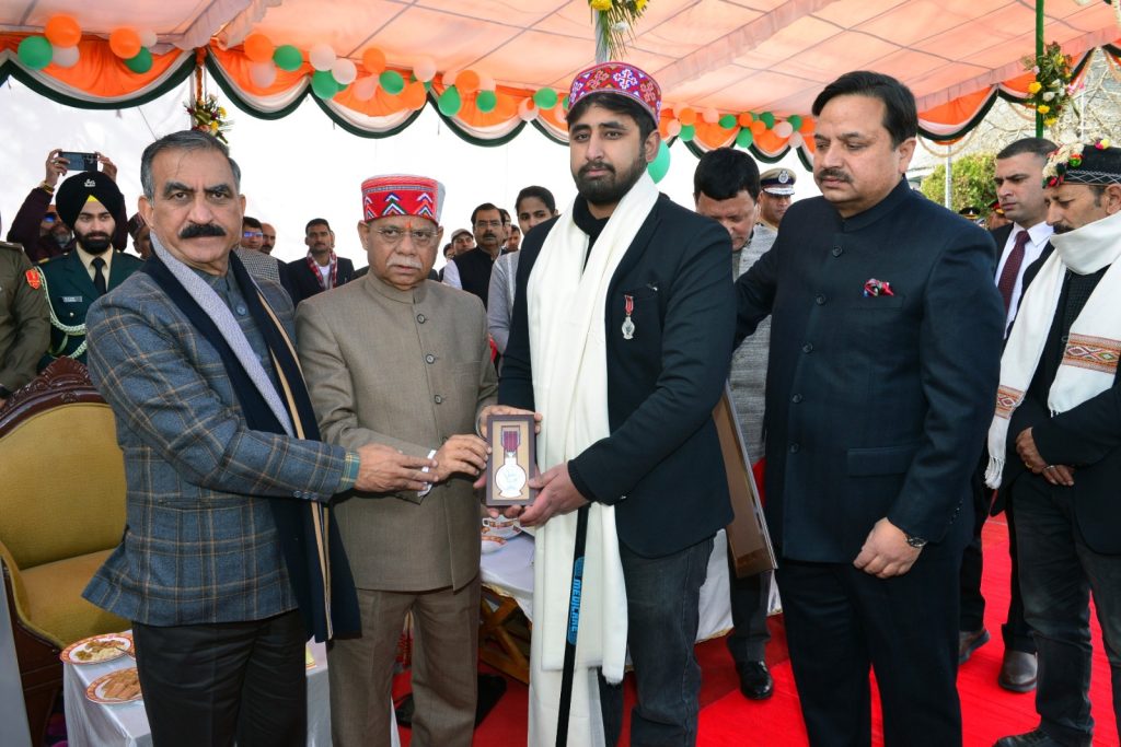 इस अवसर पर राज्यपाल ने शिमला जिला की चौपाल तहसील अंतर्गत चंबी डाकघर के गगाना गांव निवासी रितिक चौहान को जीवन रक्षा में अद्वितीय साहस के लिए उत्तम जीवन रक्षा पदक से सम्मानित किया।